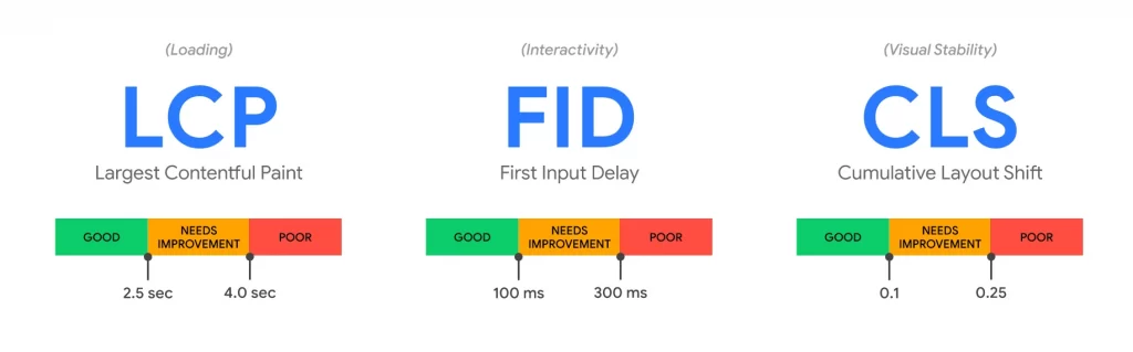 Les Core Web Vitals sont des nouvelles métriques utilisées par Google pour déterminer si l’expérience utilisateur offerte par un site est bonne… ou non. Trois éléments principaux sont analysés afin de déterminer la performance d’un site web.