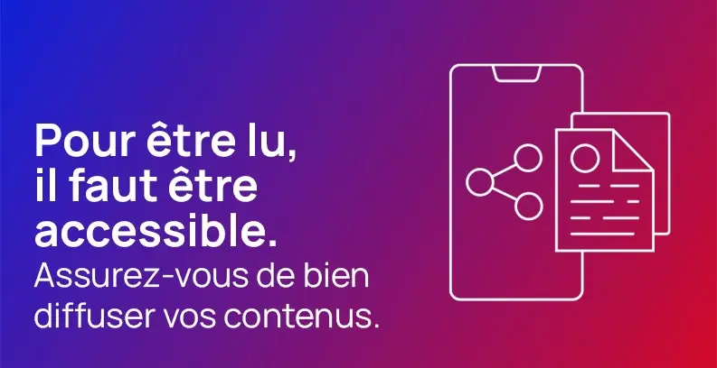 Le défi, maintenant, est de rejoindre votre audience : c’est l’étape de la stratégie de marketing de contenu. Utilisez vos réseaux sociaux et vos autres outils marketing – et même une application mobile – pour diffuser vos contenus (articles de blogue, livres blancs… ) et faire rayonner votre marque. Cela vous positionnera comme une référence dans votre domaine, ce qui sera aussi bénéfique pour le référencement naturel de votre site. Pour être lu, il faut être accessible…